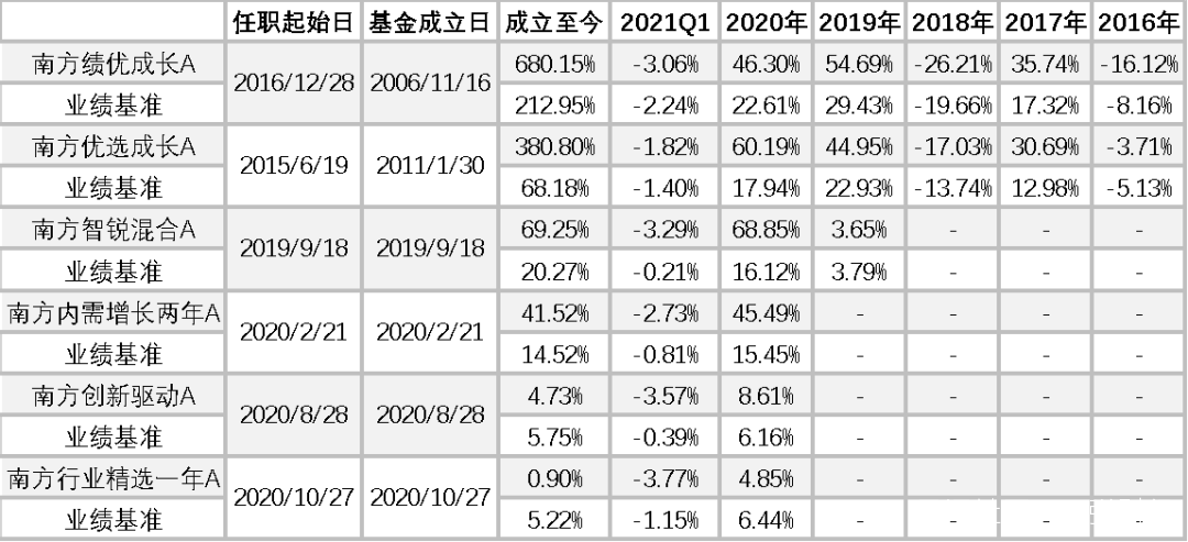 雖然倉位水平或許不算高,但是這隻基金已經為公司帶來多個大獎:該基金包攬兩屆金牛獎、三屆明星基金獎、晨星(中國)2020年度基金獎。2020年,南方優選成長就一舉拿下了晨星(中國)年度基金獎和七年期開放式混合型持續優勝金牛基金兩項沉甸甸的大獎。