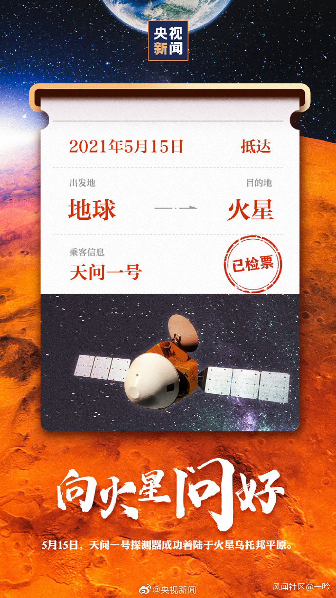 天問一號着陸,央視新聞微博下最熱評論竟然是……!_風聞