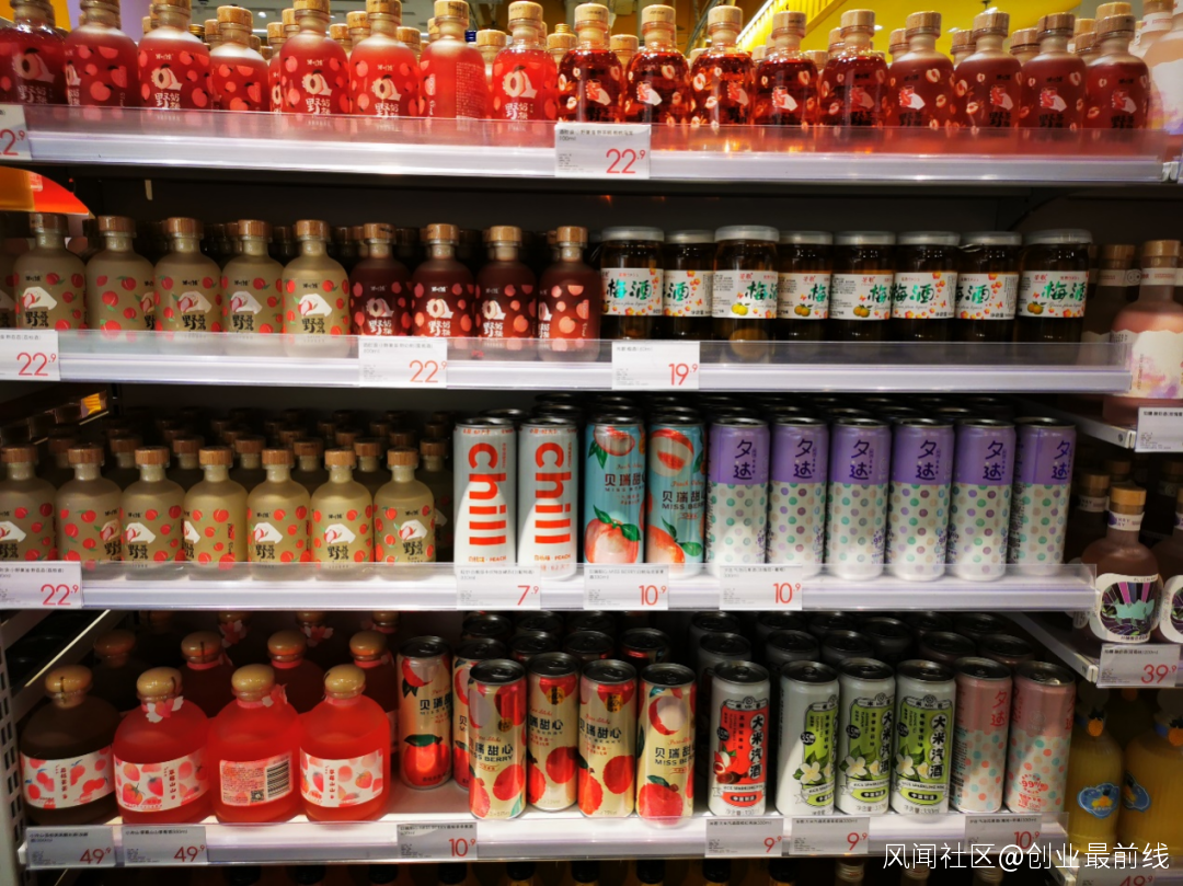 據「創業最前線」瞭解,近兩年,市場上出現多個低度酒品牌,比如貝瑞甜心、馬力噸噸、走豈清釀等。我們在北京市朝陽區一家KKV門店看到,店內陳列的低度酒品牌大約有30個,價格大多在幾十元。
