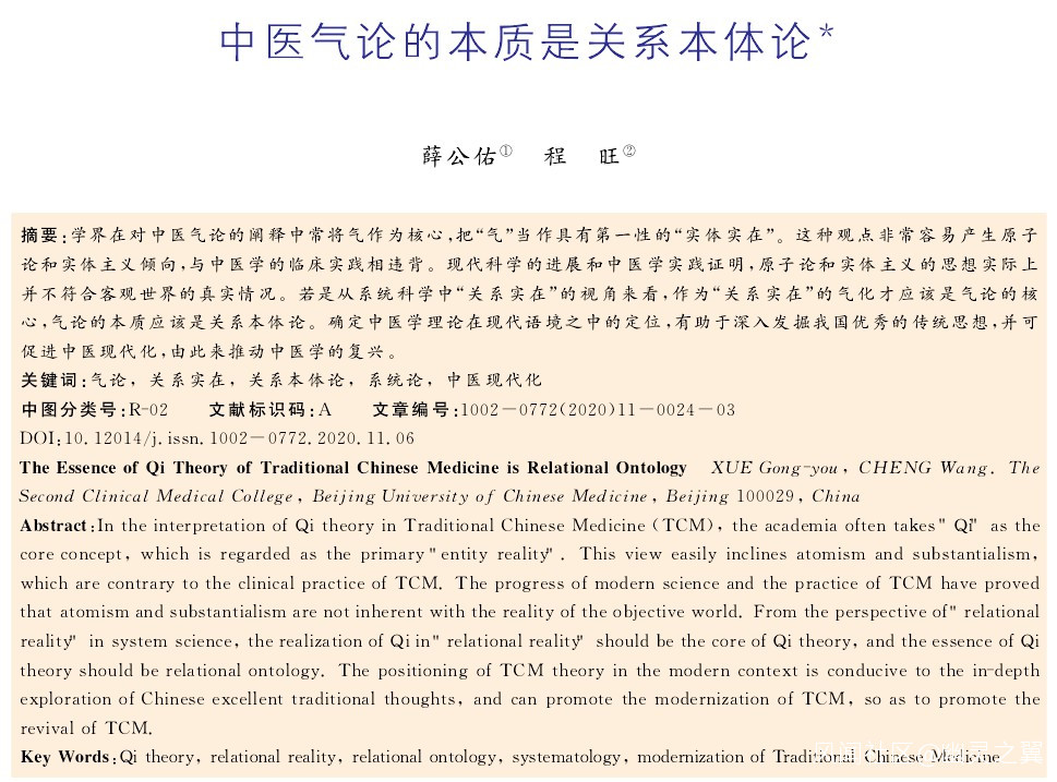 所以從實體主義與原子論角度進行的對氣的解釋、對氣論的闡發,與傳統中醫學理論和中醫學臨牀實踐並不通約。採用系統科學“關係實在”的視角則可以解決這一問題。