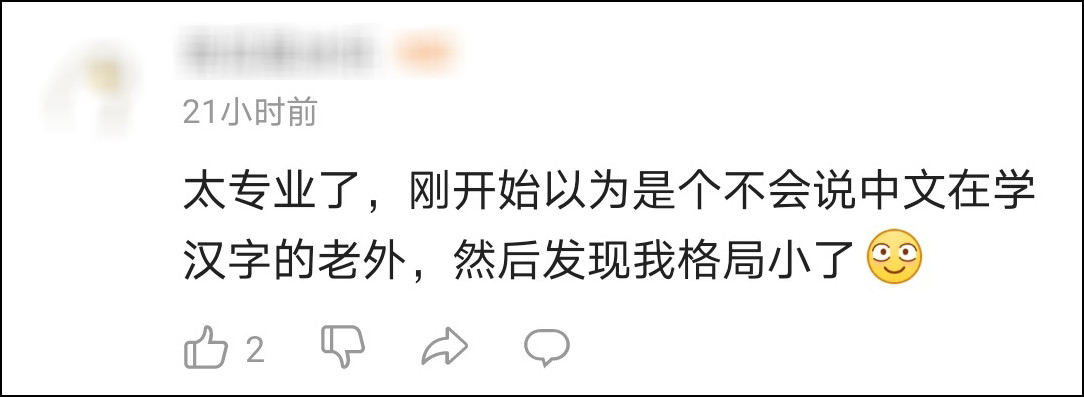 很多網友看了視頻後,紛紛表示自己學到了,並稱贊:沒想到,一個外國老爺爺的漢字功底如此深厚。