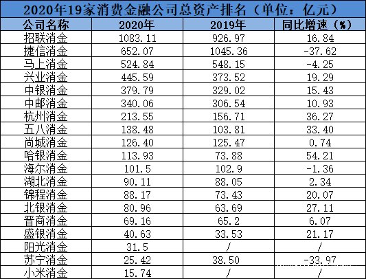 數據來源:各家消費金融公司2020年年報