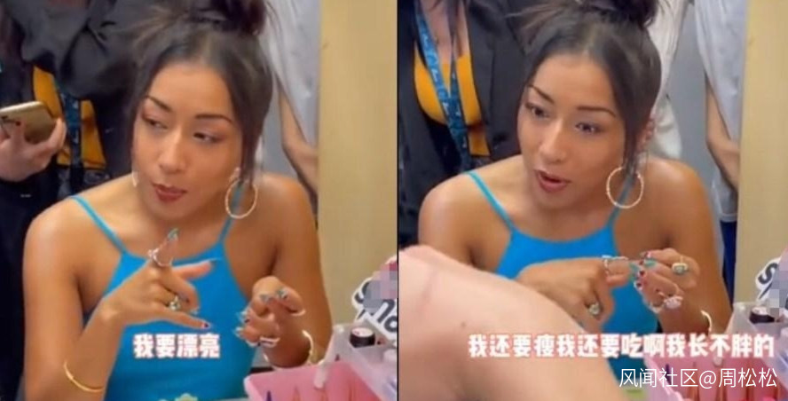 她面對直播鏡頭,跟站在身後的工作人員聊起天來,不聽不知道,一聽嚇一跳,她説的大概意思是做個藝人好難啊,平時唱歌跳舞表現要好,要漂亮,乾飯又不能多,因為吃多了會長胖,請大家多寬容和關愛她一下。