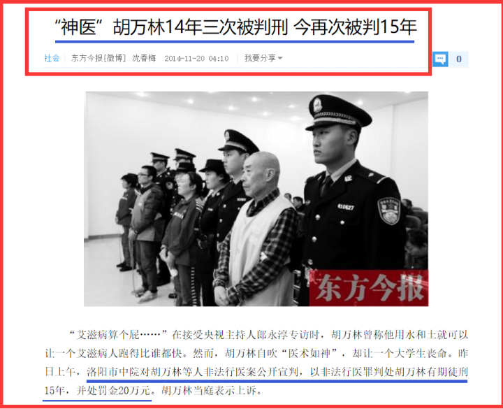 柯雲路另一項業績是寫了一本《發現黃帝內經》,吹棒原是殺人犯,後非法行醫、草菅人命的巫醫胡萬林。胡於數年前被判刑入獄。