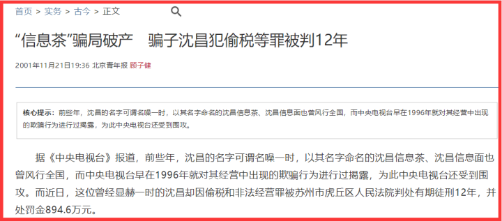 沈昌判刑後,一直揭露他的蘇州日報記者到監獄看他。問他的生活情況,沈昌説監獄伙食不夠好,希望給他多加一個菜。記者説,您不是會辟穀術嗎?沈昌苦笑道:別説了。