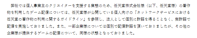 圖六 Cover關於任天堂一侵犯版權為由下架大量Cover旗下主播視頻的公告