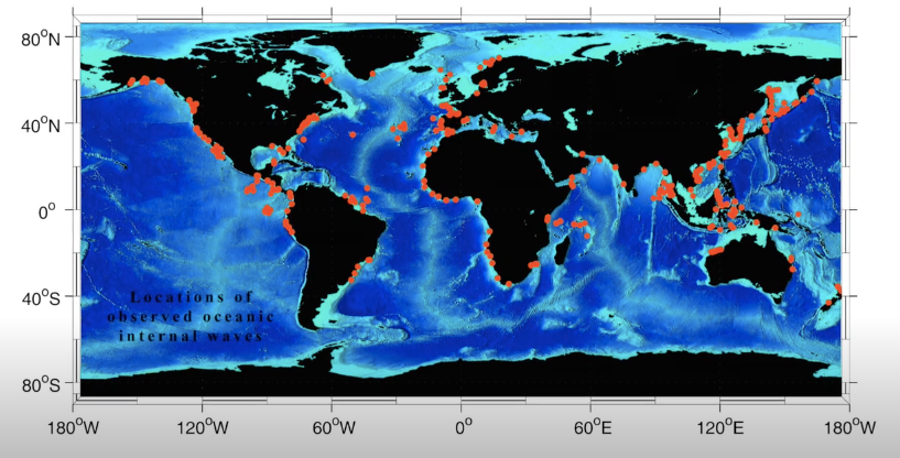 全球出現內波的地方。圖片來源:Cornell Civil and Environmental Engineering