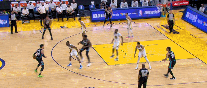 當庫裏在下半場利用轉換和攻擊瓦蘭的機會投進更多三分的時候,狄龍更不敢放庫裏的三分了,所以他擠掩護擠得更兇了。