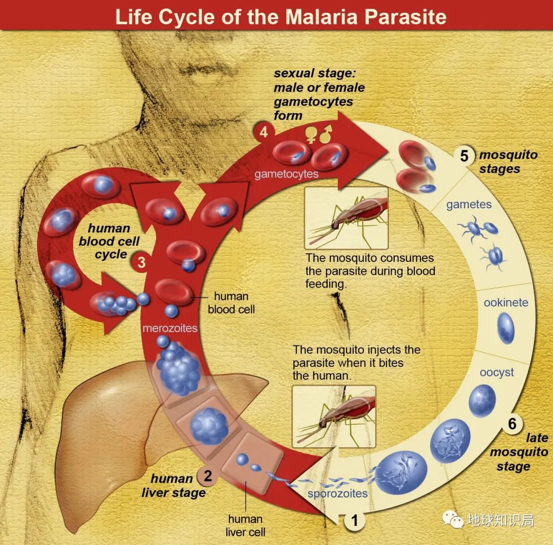 (瘧原蟲的循環,圖:NIH)▼