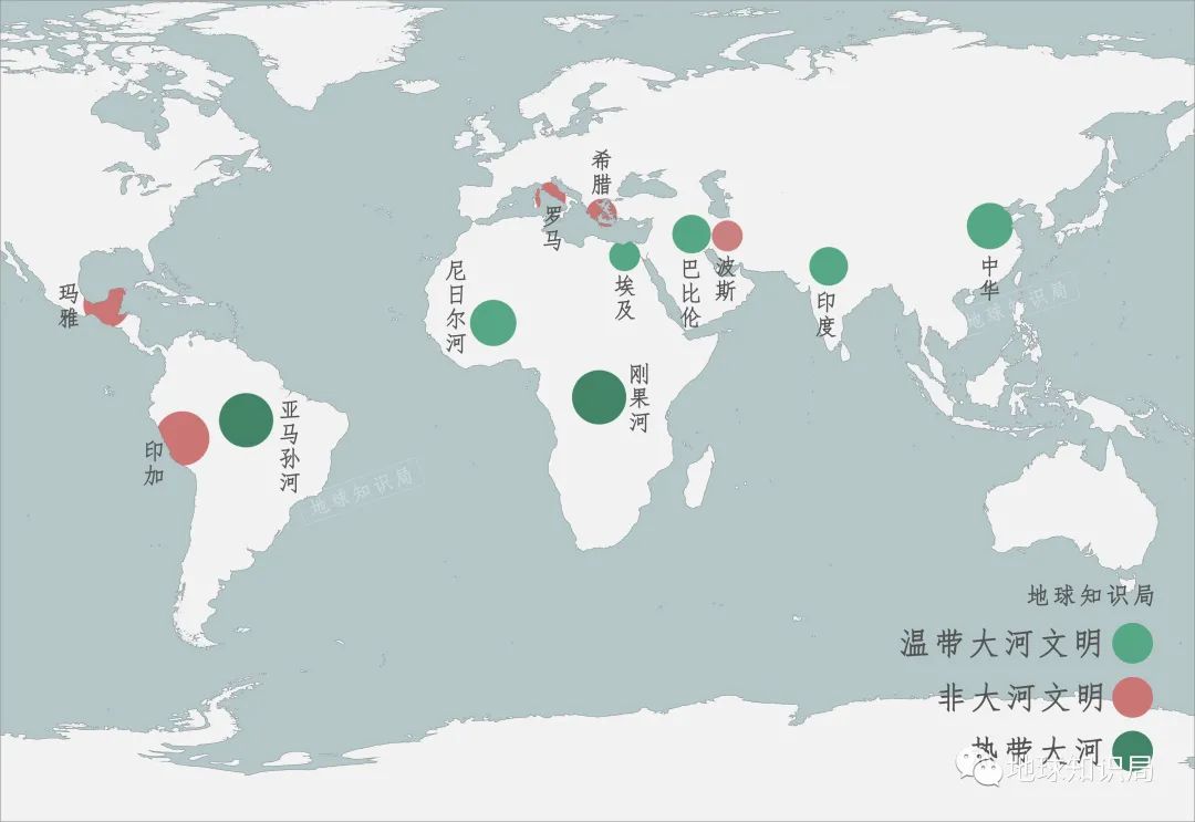 一般來講,大河兩岸是非常適合人類生存的,世界上許多文明古國都誕生於大河岸畔。這是因為,大河水量充沛,漁業資源豐富。周邊的河漫灘平原地勢低平、土壤肥沃,其間生物多樣性高,存在大量潛在的可馴化物種。特別是進入農業社會之後,河流為灌溉與航運提供了簡單直接的解決方案,優勢變得愈發明顯。