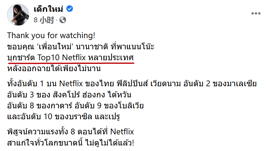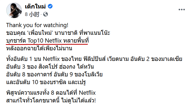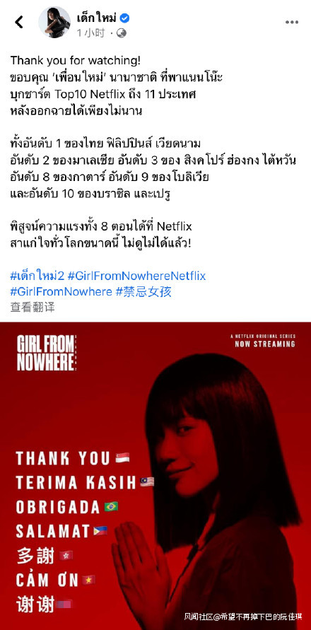 17日上午,電視劇官方facebook上對此發佈了致謝貼文,並特地用不同地方的文字和旗幟製作了海報,感謝各地觀眾的支持。