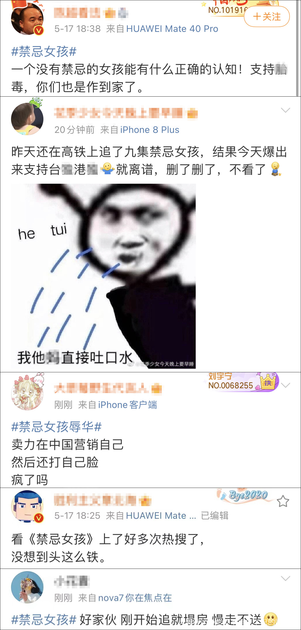 有大陸網友注意到了這篇致謝貼文,質疑《禁忌女孩》片方有支持“台獨”“港獨”的嫌疑,“在大陸狂買熱搜營銷,反手就來搞事情?”