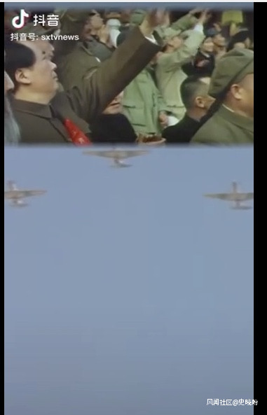 最後,用一個開國大典的視頻截圖。在目睹我們的飛機飛過天安門城樓時,毛主席先是開心的大笑,繼而神色變得凝重。曾幾何時,飛過他頭上的,都是追擊他的敵機,現如今,作為開國領袖,他檢閲了自己的空軍,這怎能不讓他開懷呢?而這個對比同時也讓他陷入了對歷史的回憶,長征途中遭受空襲時,為了保護受傷的開國中將鍾赤兵,賀子珍撲在他身上,身中17彈,所幸沒有傷及臟器。
