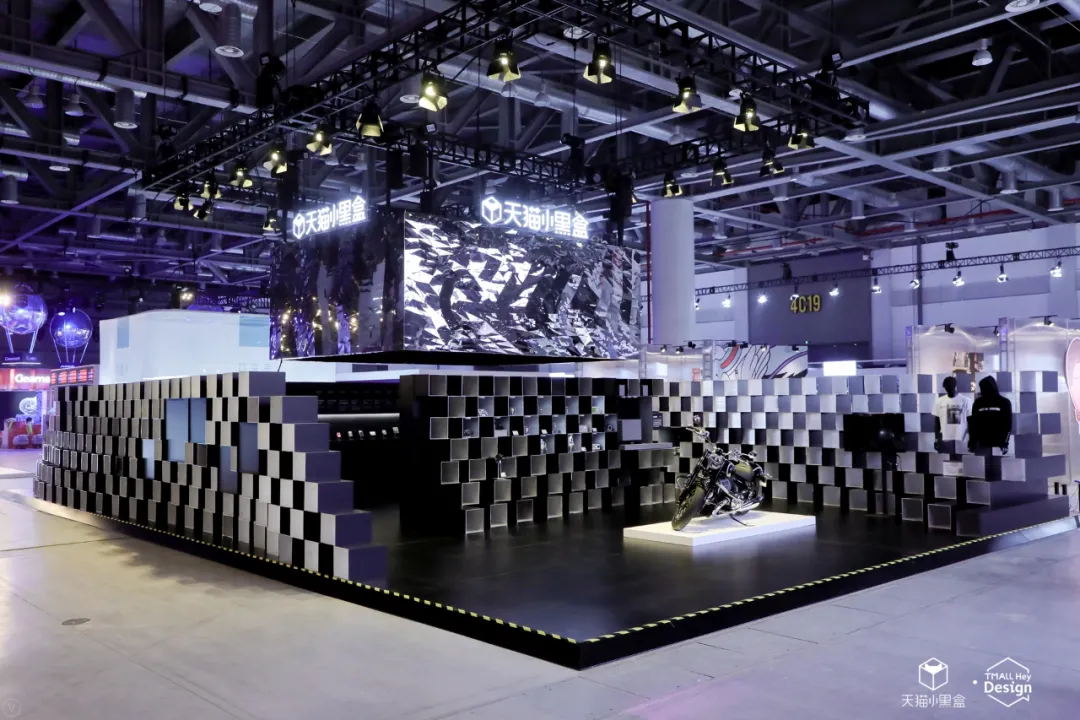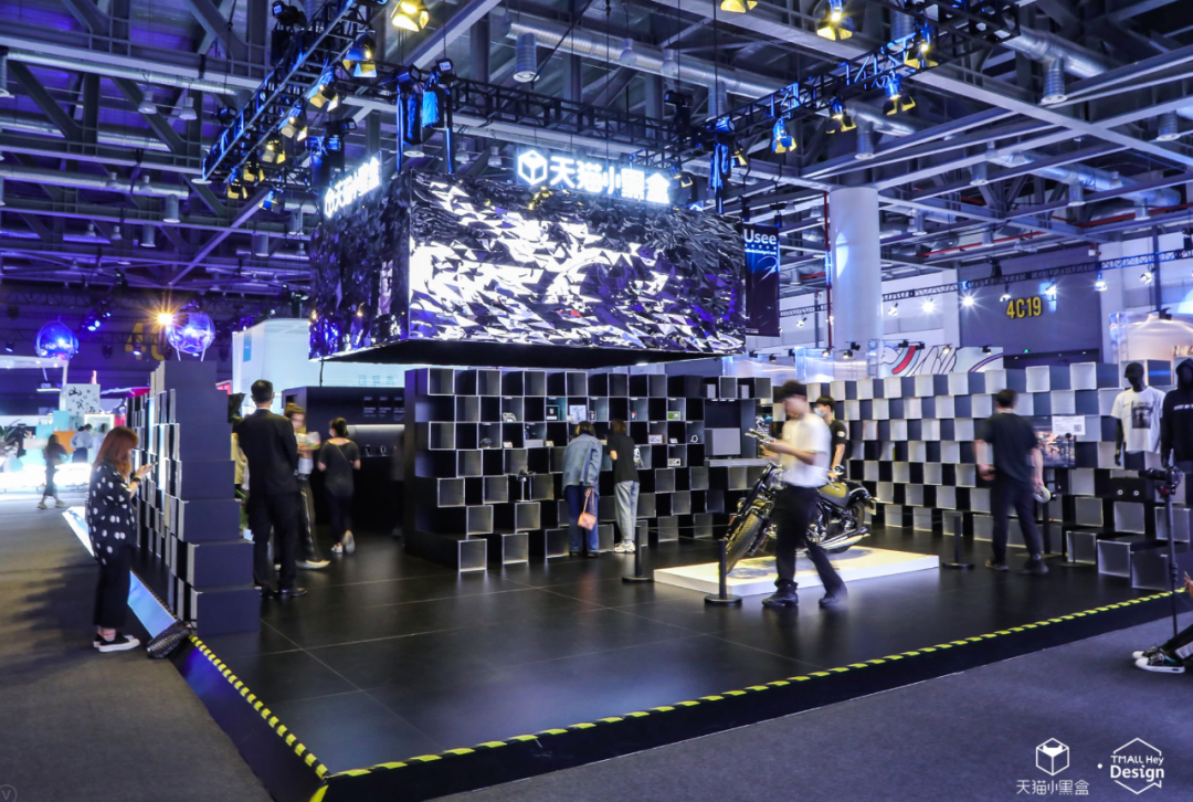 在線下,天貓小黑盒便聯動阿里巴巴設計周,並邀請國內頂級數字藝術家張周捷和建築師張朔炯,打造了一種極富未來感的天貓小黑盒線下展區。