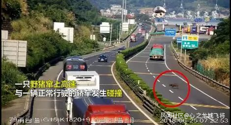 2018年6月25日上午7點22分,在G15瀋海高速蒼南路段發生了一起離奇的交通事故,正常行駛的轎車突然撞上橫穿高速公路的野豬 ,野豬當場死亡,驚慌不已的車主隨即報了警。