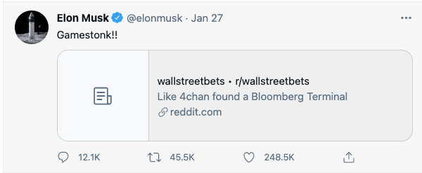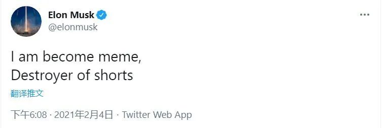 如今看着散户們被空頭們如此欺負,馬斯克2月4日揭竿而起: