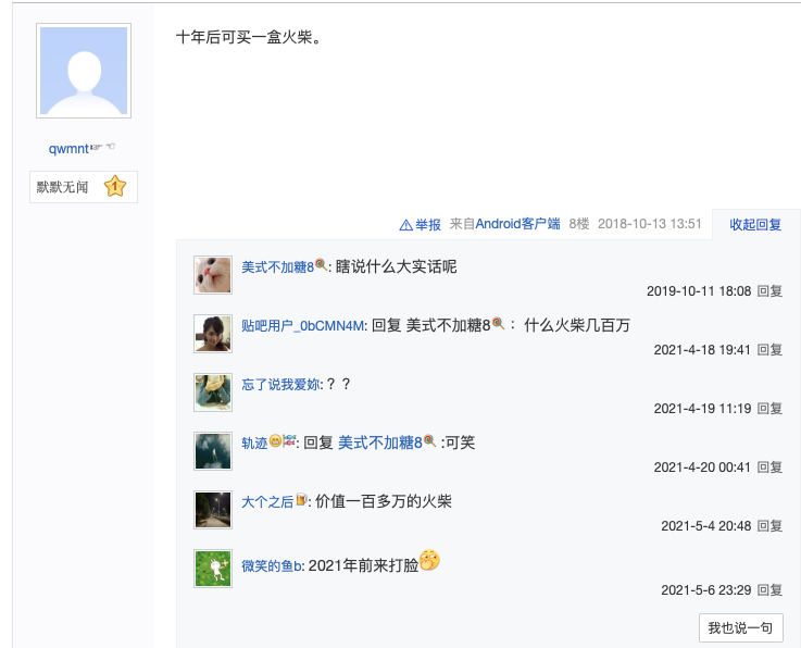 當時還引發了網友的羣嘲,嘲笑他30萬狗狗幣十年後只能買一盒火柴。