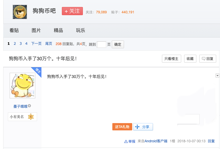 此時有人在狗狗幣貼吧翻出了一張貼子。