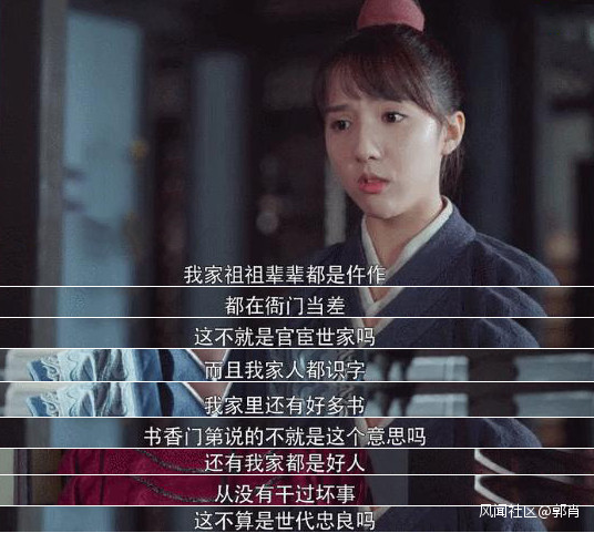 她不因為自己的出身而妄自菲薄,反而重新詮釋了官宦世家、書香門第、世代忠良:
