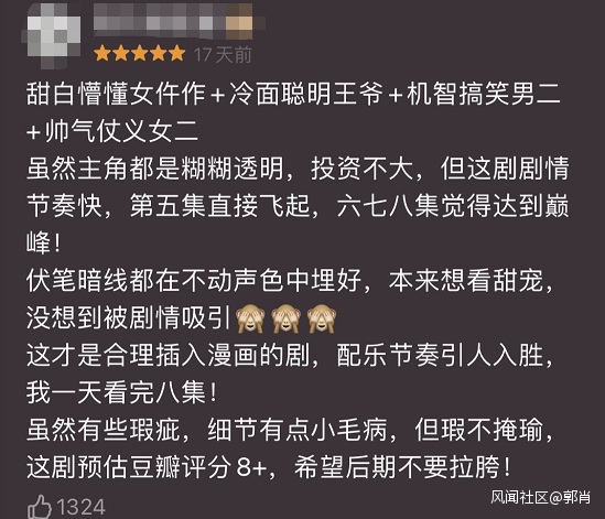 沒有流量演員、沒有鋪天蓋地的通稿宣傳,該劇目前並不“熱門”,但不少網友已經化身“自來水”主動安利起了這部劇,還有人認為這是“上半年古裝top”。