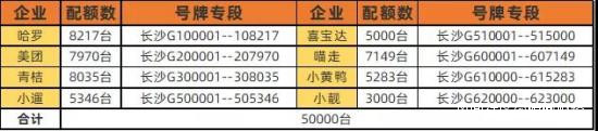 長沙交警支隊5月7日消息,在考慮了長沙城市空間承載能力、停放資源、公眾出行需求等多方因素後,由8家共享企業參與運營,哈囉、青桔和美團這“三巨頭”毫無疑問佔據了其中的半數,其中哈囉更是拿下最高份額。而投放的50000台共享電動自行車,將按照登記一批投放一批的方式快速在全市投放,預計一週左右時間可全部投放到位。