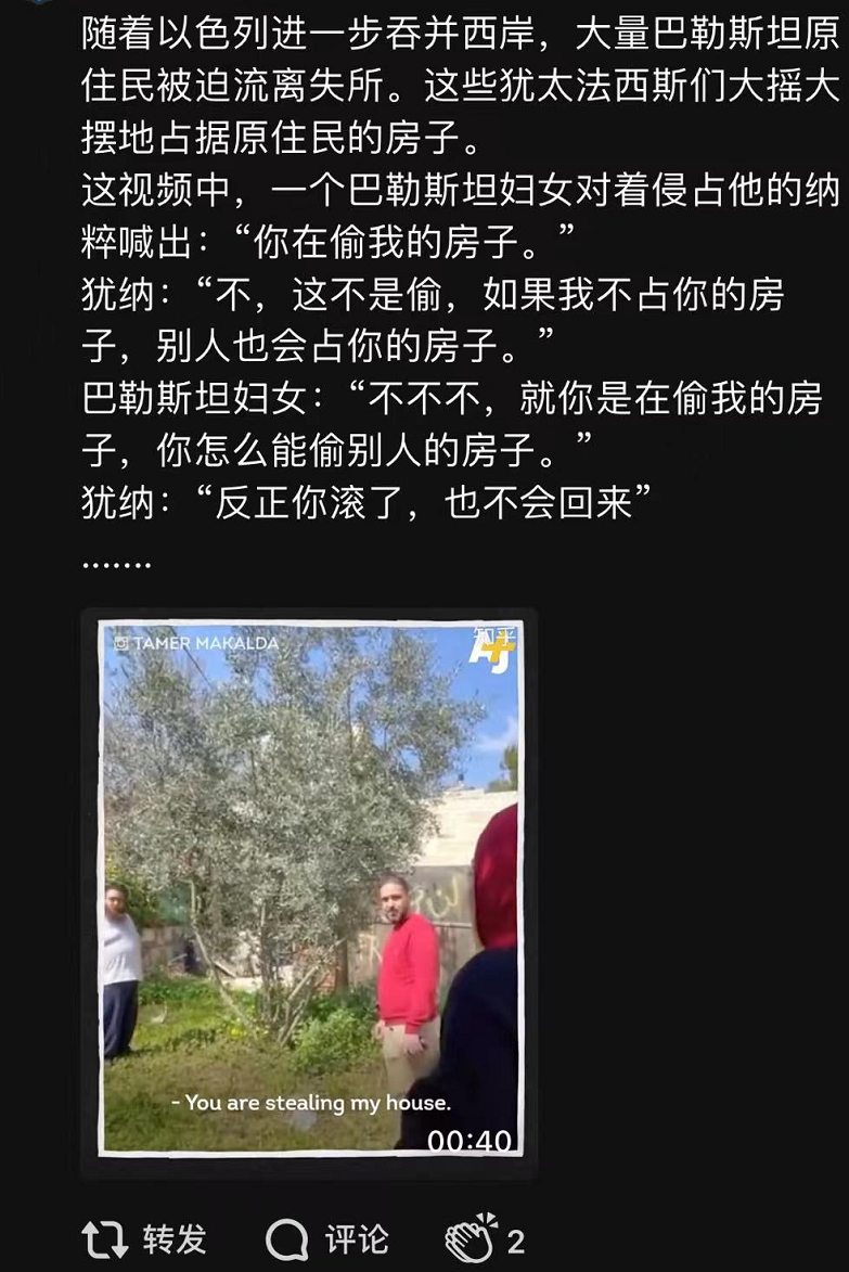 你不怪猶太復國主義者喪心病狂,壓榨巴勒斯坦民眾的生存空間,用武力驅逐、圈養、奴役一個民族,肆意挑起衝突,毆打、轟炸、屠殺平民……反而怪巴勒斯坦人奮起反抗,爭取自己的生存權?