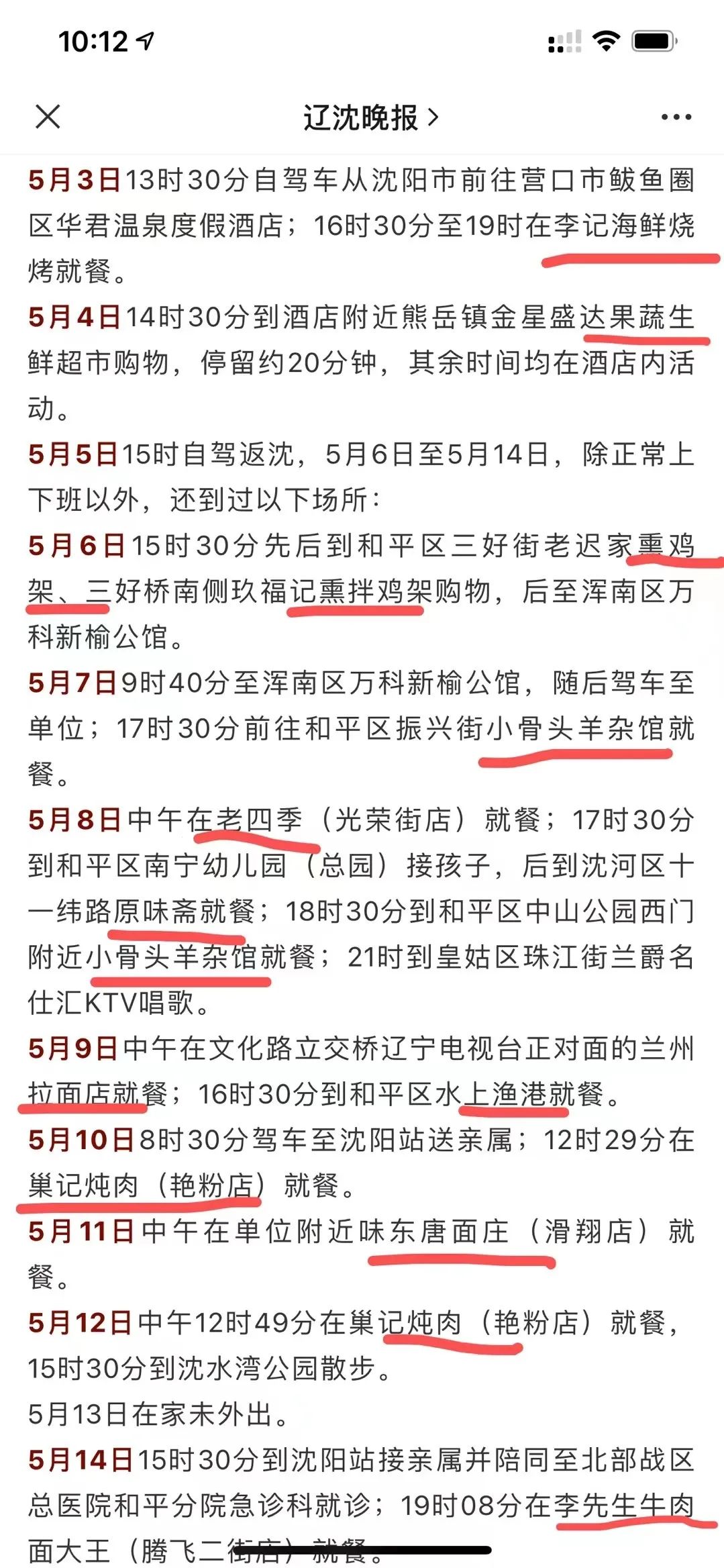 大爺平均每天下兩次館子,雞架、燉肉、抻面,硬把流調記錄整成了瀋陽美食攻略,來旅遊直接照着吃一圈,沒毛病。