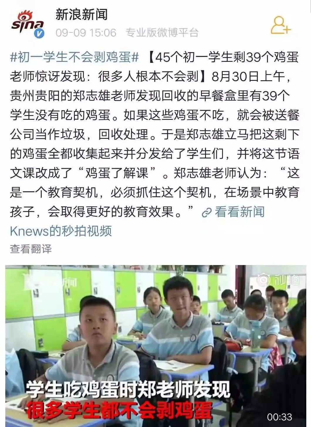 貴州一名老師回收早餐盒發現班級45個學生,有39個學生沒吃雞蛋,一問才知道大部分學生根本不會剝雞蛋。