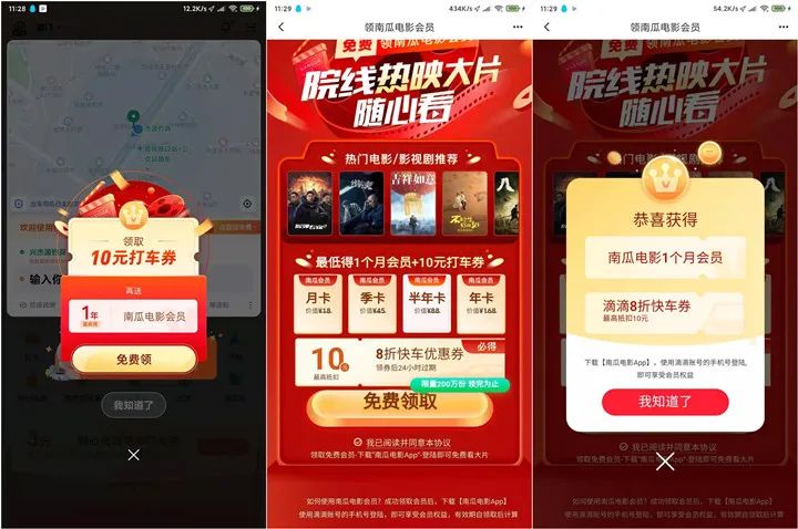 線下回本太慢,那線上呢?因保底《李煥英》一戰成名的儒意影業,其香港上市的母公司恆騰網絡也聲名大噪,借勢收購類似人人視頻的野生視頻網站南瓜電影,主攻恐怖驚悚類影視,在港股市場大肆講起了對標Netflix的新故事。南瓜視頻還跟滴滴打通合作,推出打車免費領會員的拉新活動。硬糖君一打車就被推送這個廣告,真真不勝其煩。