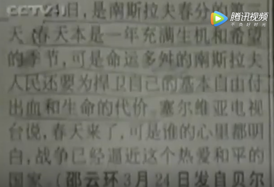 “春天本是一年充滿生機和希望的季節,可是命運多舛的南斯拉夫人民還要為捍衞自己的基本自由付出血和生命的代價。”