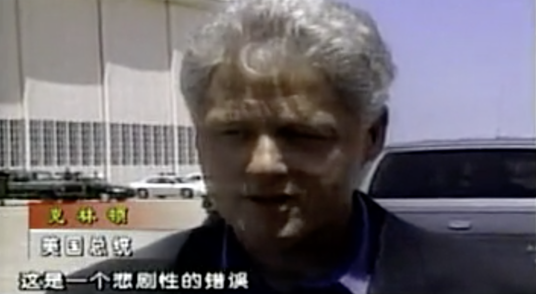美國時任總統克林頓假惺惺的説,這是一個悲劇性的錯誤。向中國領導人和中國人民表達誠摯的悼念和遺憾。