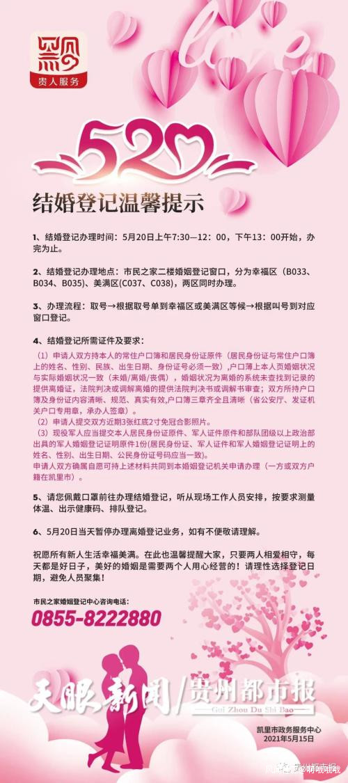 為妥善做好“5·20”當天婚姻登記工作,現將有關事項調整如下: