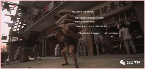 着陸成功之後,祝融號火星車就該出場了。祝融號火星車身負重任,攜帶了六台科學儀器,要完成五大科學目標,分別是: