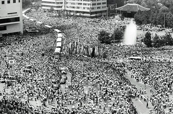 主思派主導的全大協參加了87年的“6月抗爭”,促成了韓國的民主化,這些青年學生可以説是那個年代韓國社會運動的主力軍。