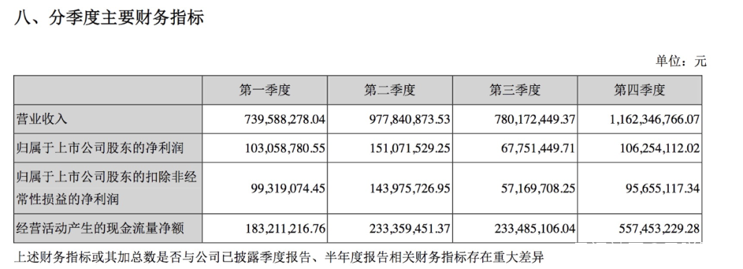 然而,與其它季度相比,2020年第四季度同比增長情況卻大不如前,營收、歸屬於上市公司股東的淨利潤同比增長率僅為20.18%、5.65%,這在2020年四個季度中增速幾乎最低。