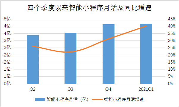 而創作者的繁榮助也推動了智能小程序的高位增長,根據一季度財報顯示,智能小程序月活達4.16億,同比增長74%,延續了加速增長的態勢。