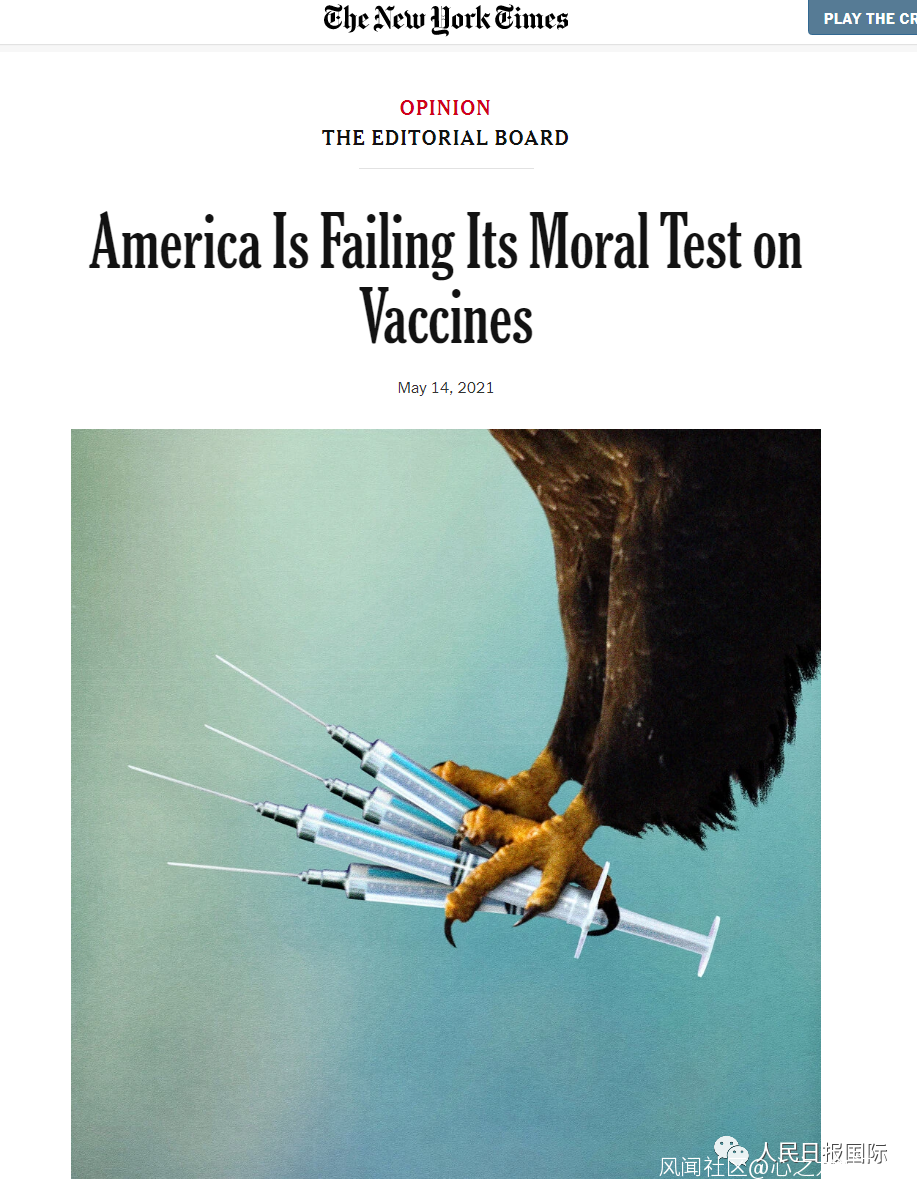《紐約時報》的社評説,現在美國“是時候給世界其他地區提供幫助了”,這是“義務與機遇並存的時刻”。“不幸的是,拜登政府迄今為止仍未採取大膽、全面的策略,來儘快幫助世界接種疫苗。”《紐約時報》認為,“美國和世界上最富有的一些國家正面臨巨大的道德挑戰。”