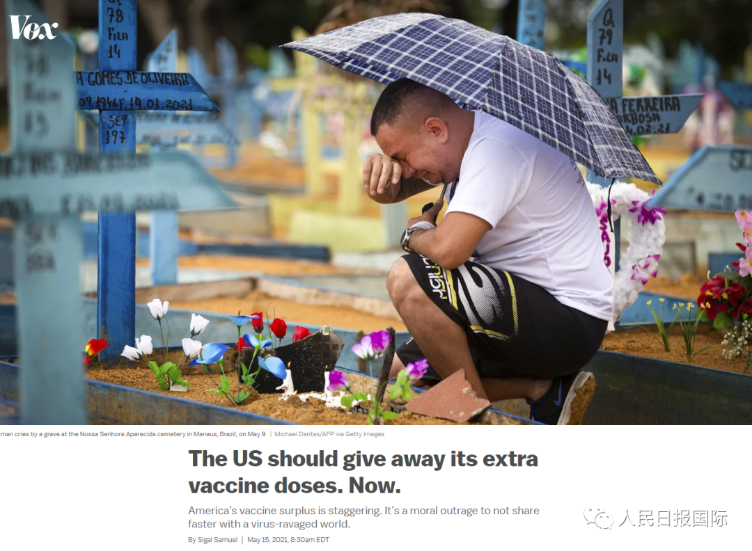 美國沃克斯新聞網評論説,美國新冠疫苗過剩情況“令人瞠目結舌”。如果美國不盡快向世界提供這些疫苗,這將是“道德上的暴行”,“美國應該向世界提供其過剩的疫苗,就是現在”。