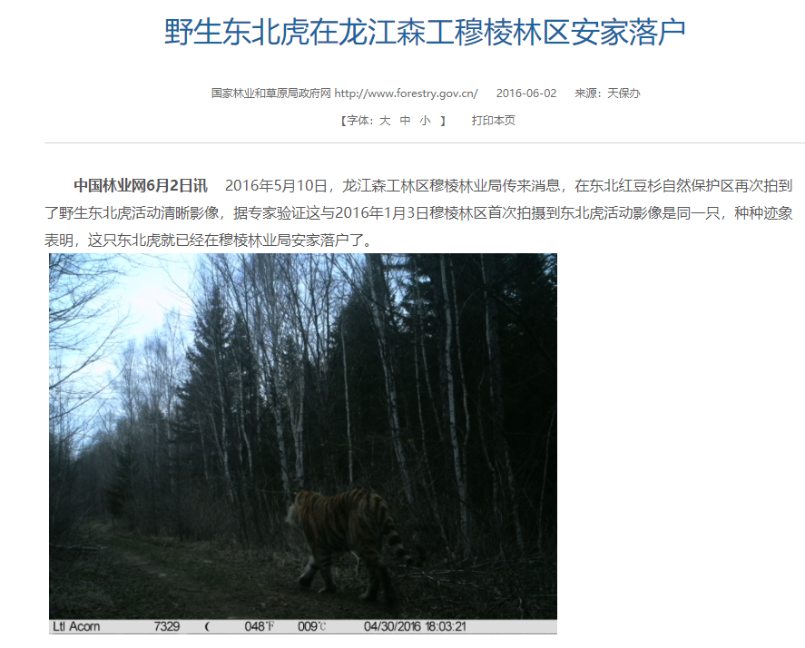而穆稜也曾在2014年3月、2015年10月、2016年1月和2018年10月,在轄區林場內有過發現東北虎活動蹤跡的新聞報道。