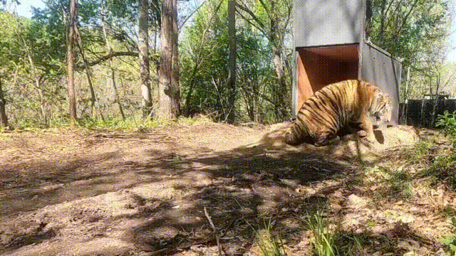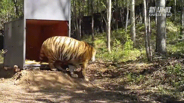 放歸視頻顯示,放歸的時間選在了18日的早上8時左右,這個時段通常也是老虎等貓科動物喜歡的晨昏活動時間。