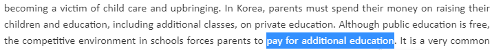 同樣,“雞娃”這個行為似乎是近幾年才在中國流行起來,而韓國人“雞娃”的歷史更為久遠。如下文中所説,儘管韓國的公立教育是免費的,但是為了讓孩子在學校競爭中取勝,家長不得不負擔高昂的額外的教育費用——各種課外輔導班、興趣培訓班等等。這種情況下,家長不僅要出錢,還要出力,緊盯孩子學習甚至還要參與學習,而孩子也要面對巨大的競爭壓力。