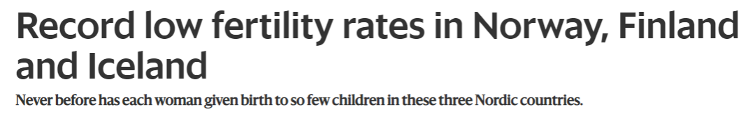 在大家印象中擁有“模範育兒政策”的北歐也出現了生育率下降——