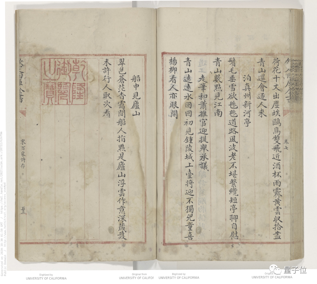 直到將近100年後的1950年代,清代曹庭棟輯纂的《宋百家詩存》(卷七),出現在美國加州大學伯克利分校東亞圖書館。