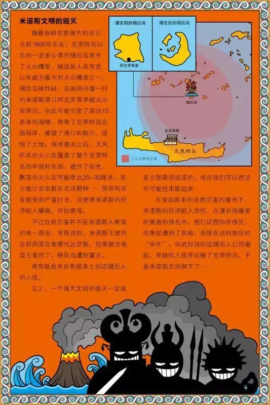 不過自然災害並不是米諾斯人衰落的唯一原因,有傳説稱,米諾斯王曾經去西西里島索要代達羅斯,結果被當地國王害死了,艦隊也遭到覆滅。再有就是來自希臘本土的邁錫尼人的入侵。總之,一個強大文明的毀滅一定是多方面原因造成的,或許我們可以把這些可能性串聯起來:在突如其來的自然災害的重擊下,米諾斯的經濟陷入危機,在漫長而痛苦的衰退和掙扎中,他們試圖向外移民,結果卻遭到了失敗,而就在這時曾經的“學生”,尚武好戰的邁錫尼人已經崛起,並趁機入侵併征服了克里特島,於是米諾斯文明倒下了……