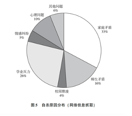 《教育藍皮書:中國教育發展報告(2018)》中的《我國中小學生自殺問題的現狀分析》分析,導致中小學生採取自殺行為的原因多樣,包括家庭矛盾、師生矛盾、校園欺凌等。