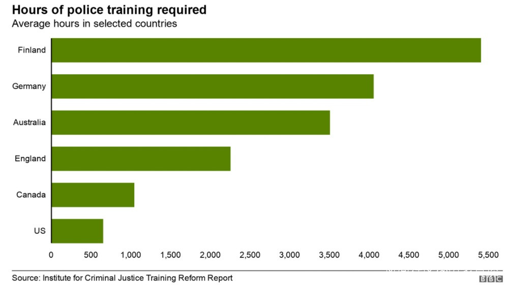 該報告研究了100多個國家/地區的警察培訓要求,發現就平均所需時間而言,美國是最低的。
