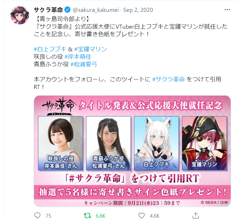 圖三 櫻花大戰手遊推特 一開始沒有白上吹雪