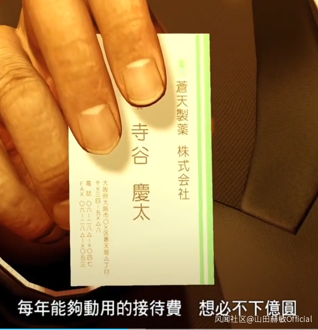 反映日本黑幫的遊戲,如龍0的開頭也有體現過這個職務的報銷力度之大。真島利用鬧事客人是製藥公司商務代表,稱其報銷額度高,強迫他為整間夜店消費買單。注意這和正常的商務接待無關,屬於挪用公款中飽私囊。(圖一和圖二)