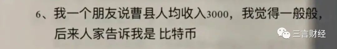 曹縣人均收入3000,單位還是比特幣。