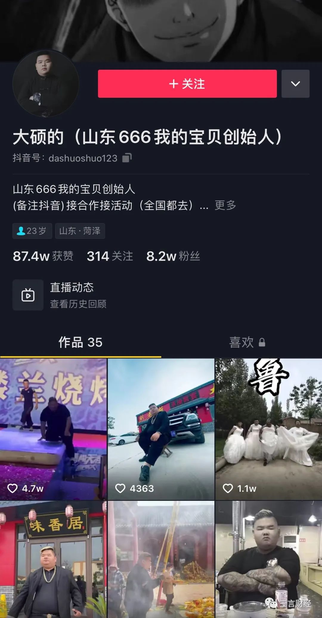 大碩還專門在自己賬號後增加了“山東666我的寶貝創始人”描述。